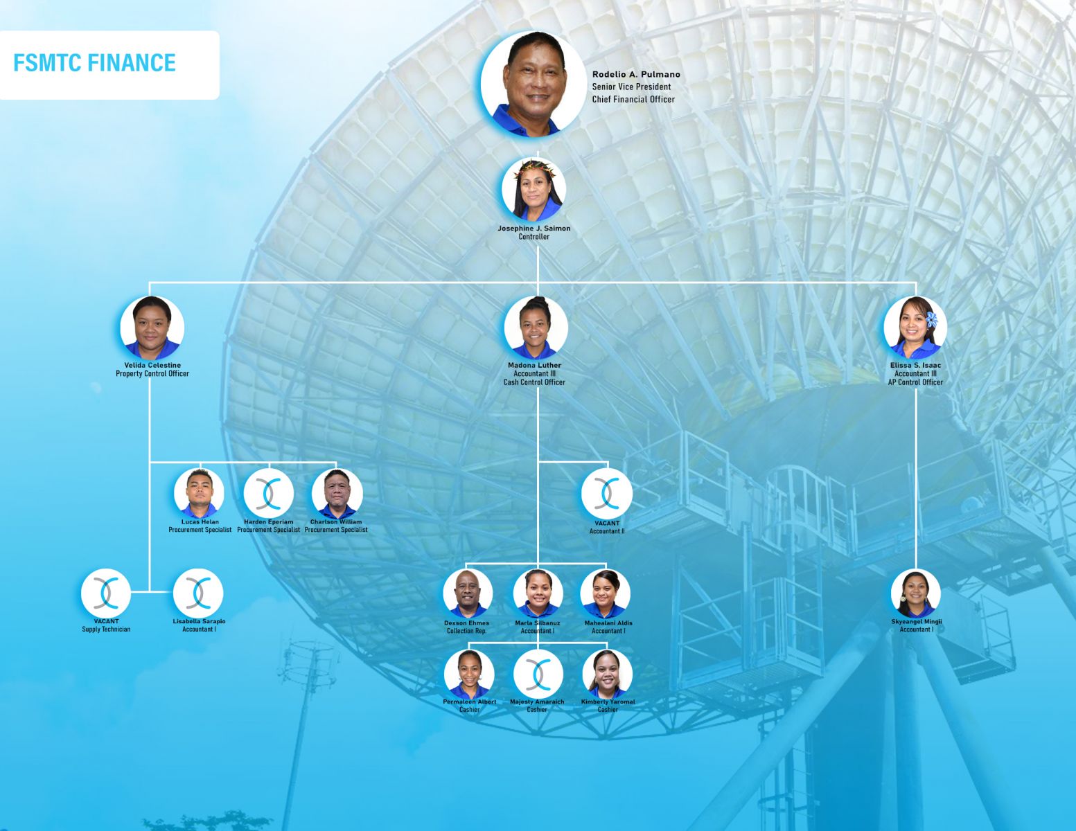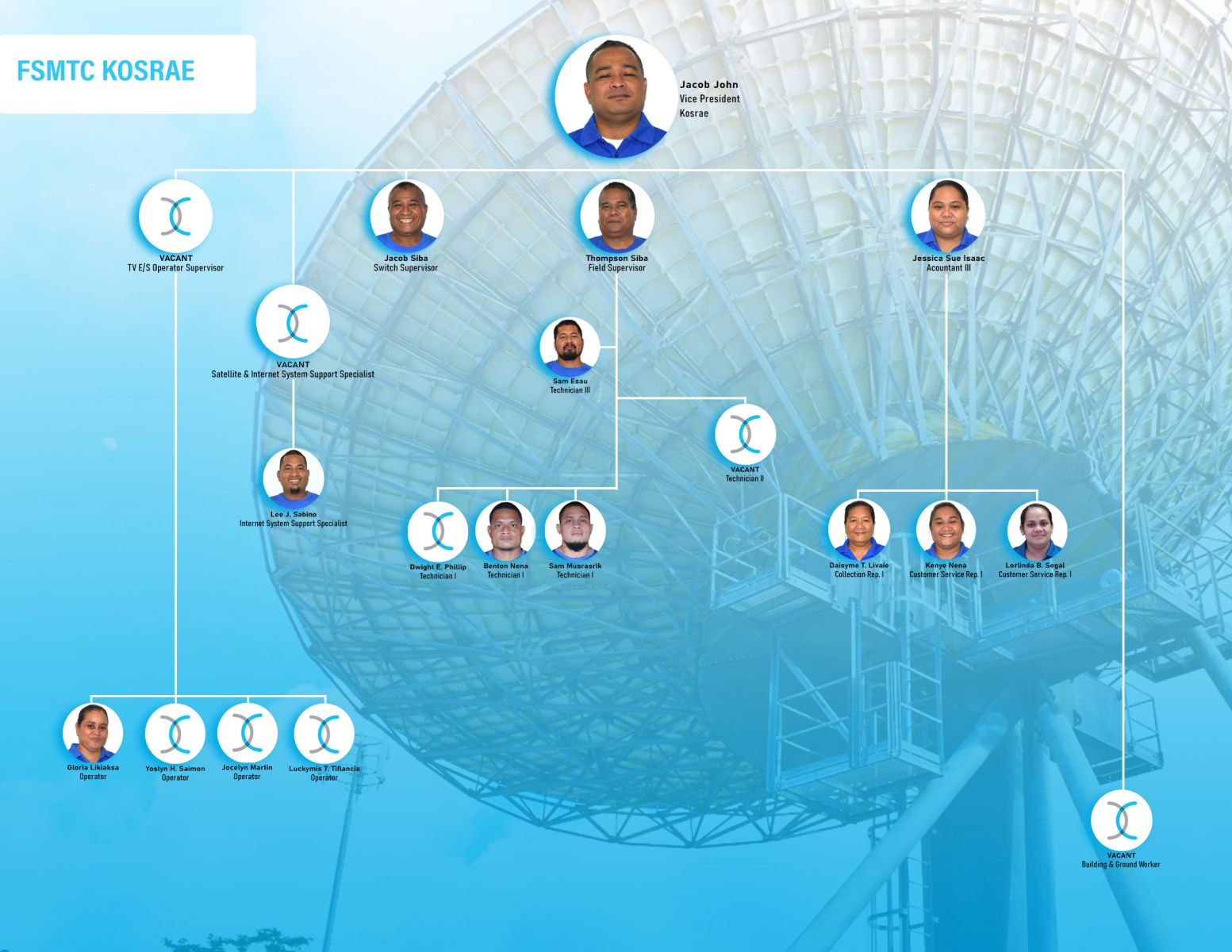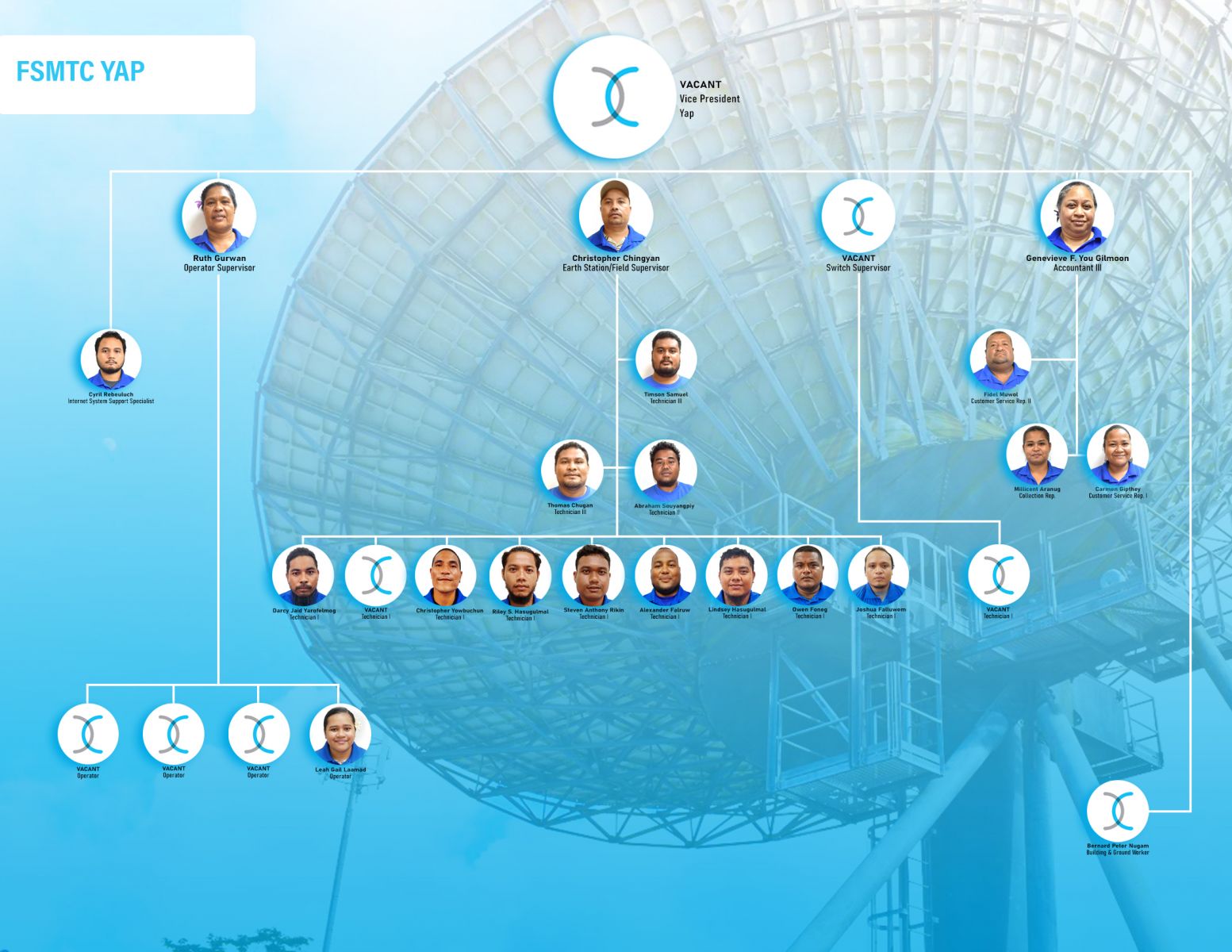 FSMTC Executive FSMTC Network Operation & Engineering FSMTC Administration and Marketing FSMTC Finance Department FSMTC Chuuk Branch FSMTC Kosrae Branch FSMTC Yap Branch