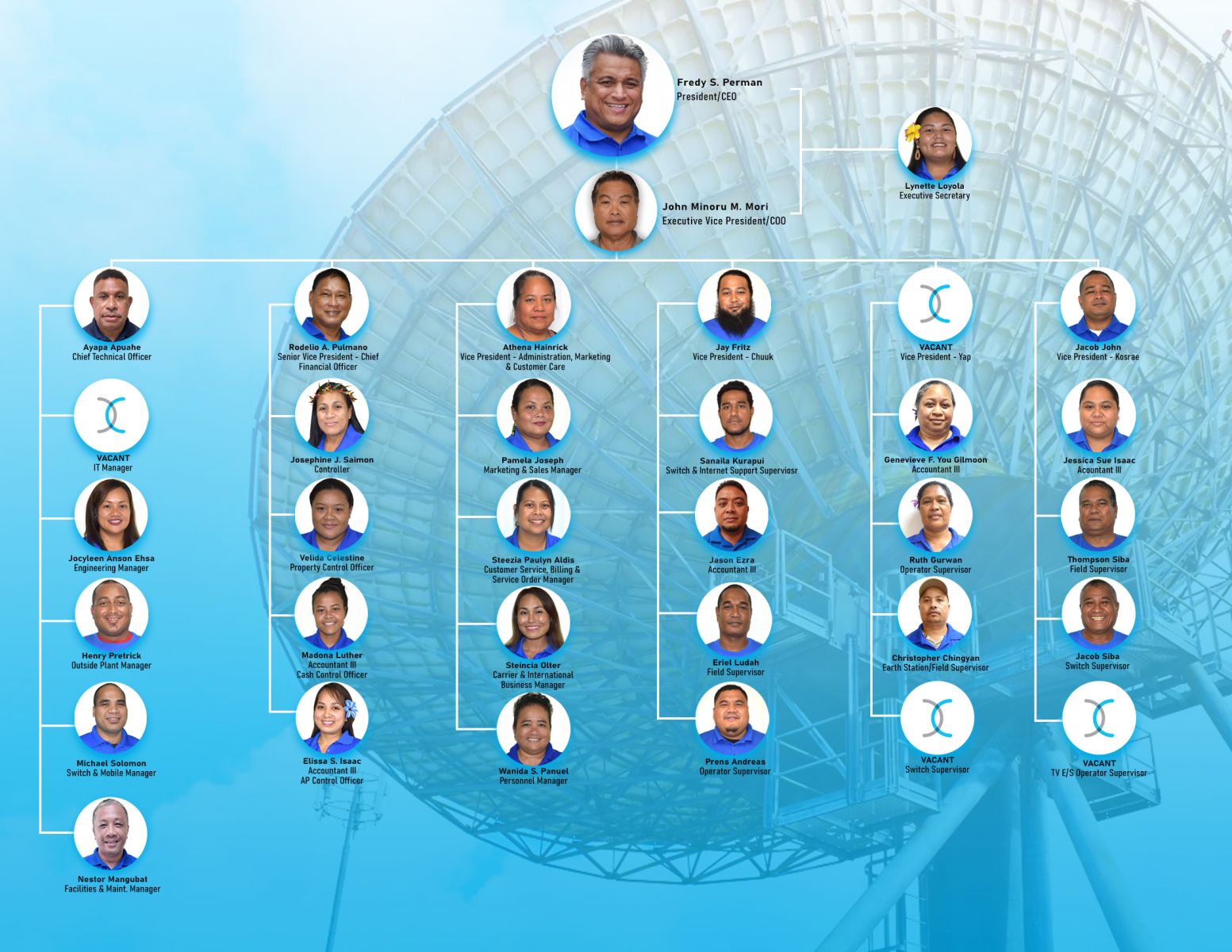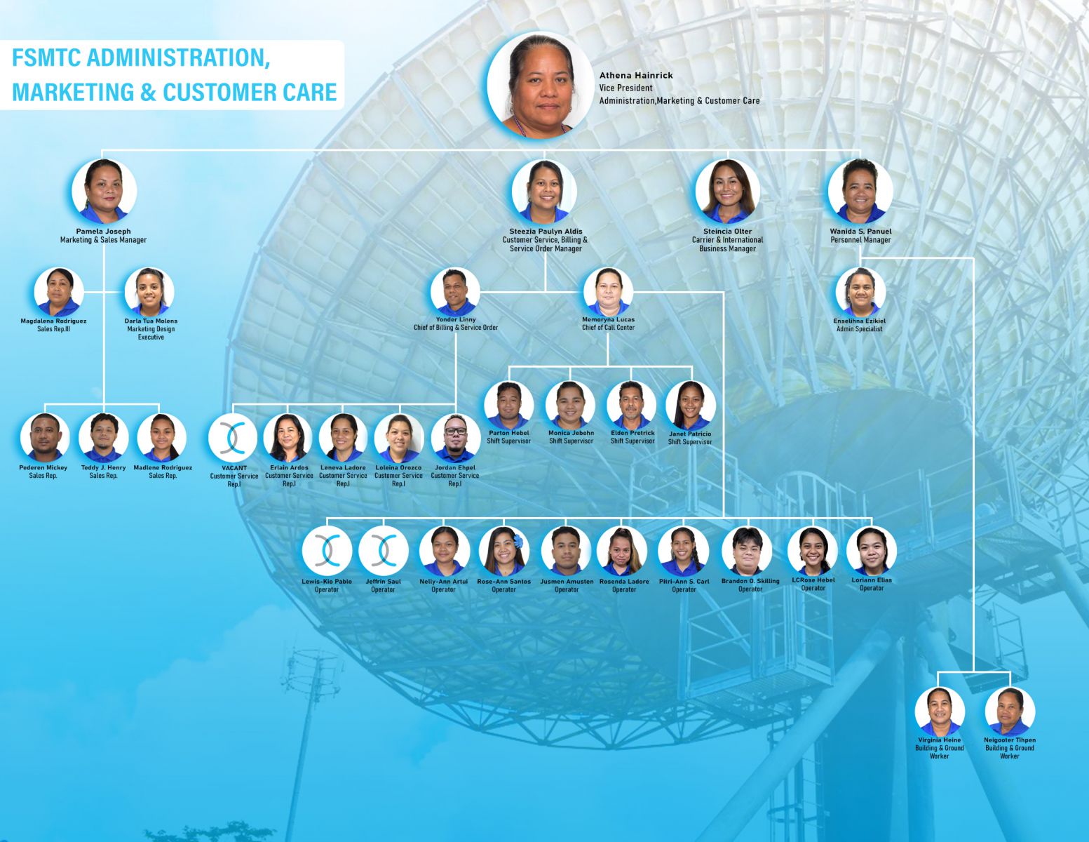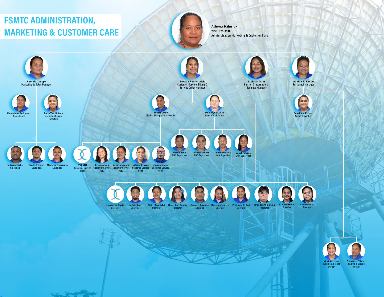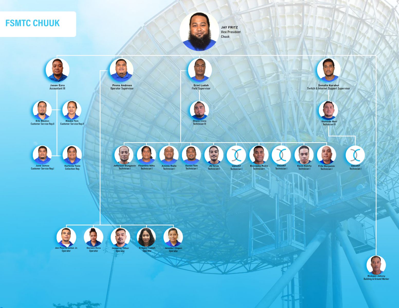 FSMTC Executive FSMTC Network Operation & Engineering FSMTC Administration and Marketing FSMTC Finance Department FSMTC Chuuk Branch FSMTC Kosrae Branch FSMTC Yap Branch