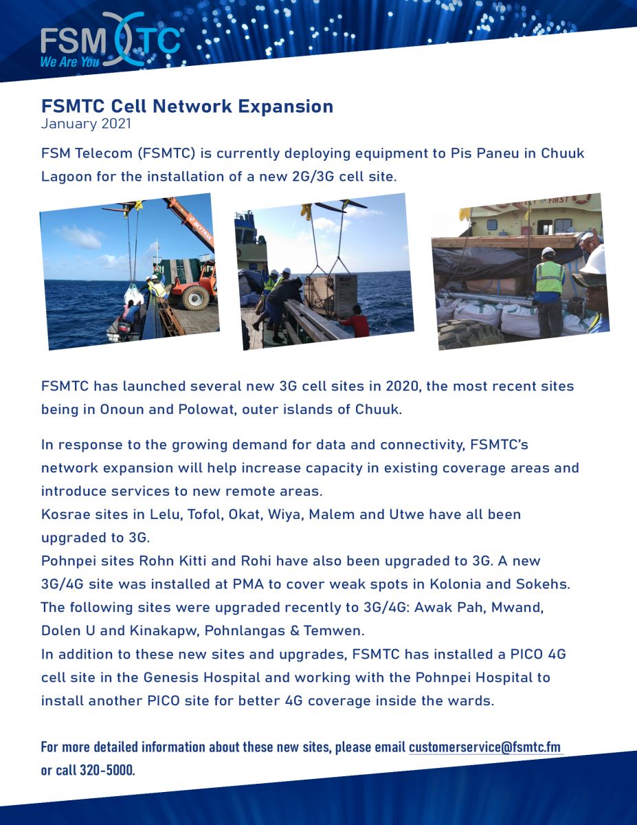 FSM Telecom would like to announce that there will be upcoming changes to our office hours. Effective Monday November 2nd, 2020, FSMTC Pohnpei business hours will be as follows: